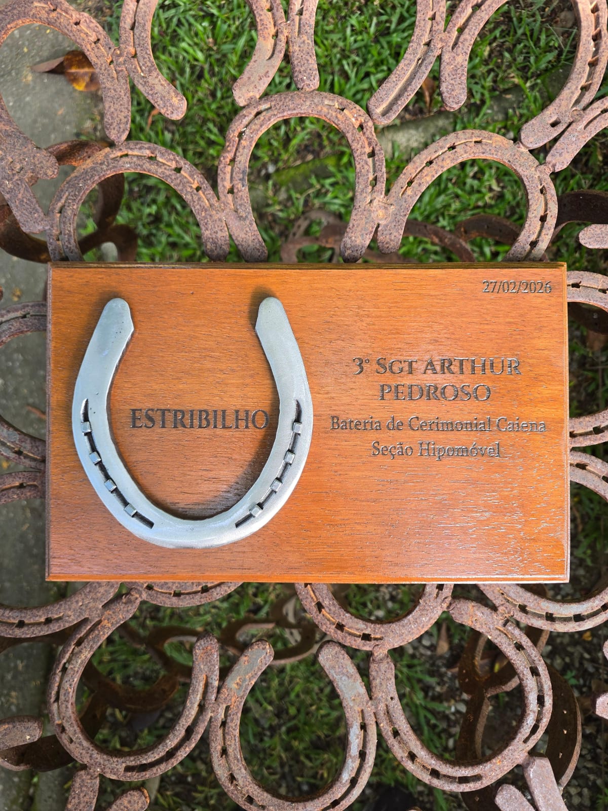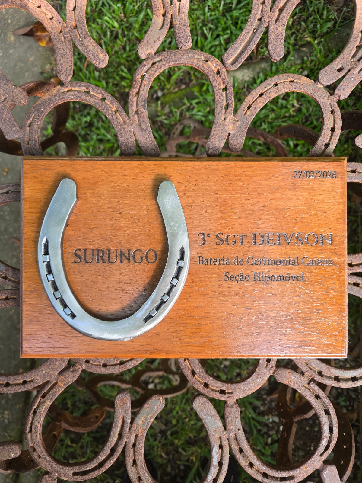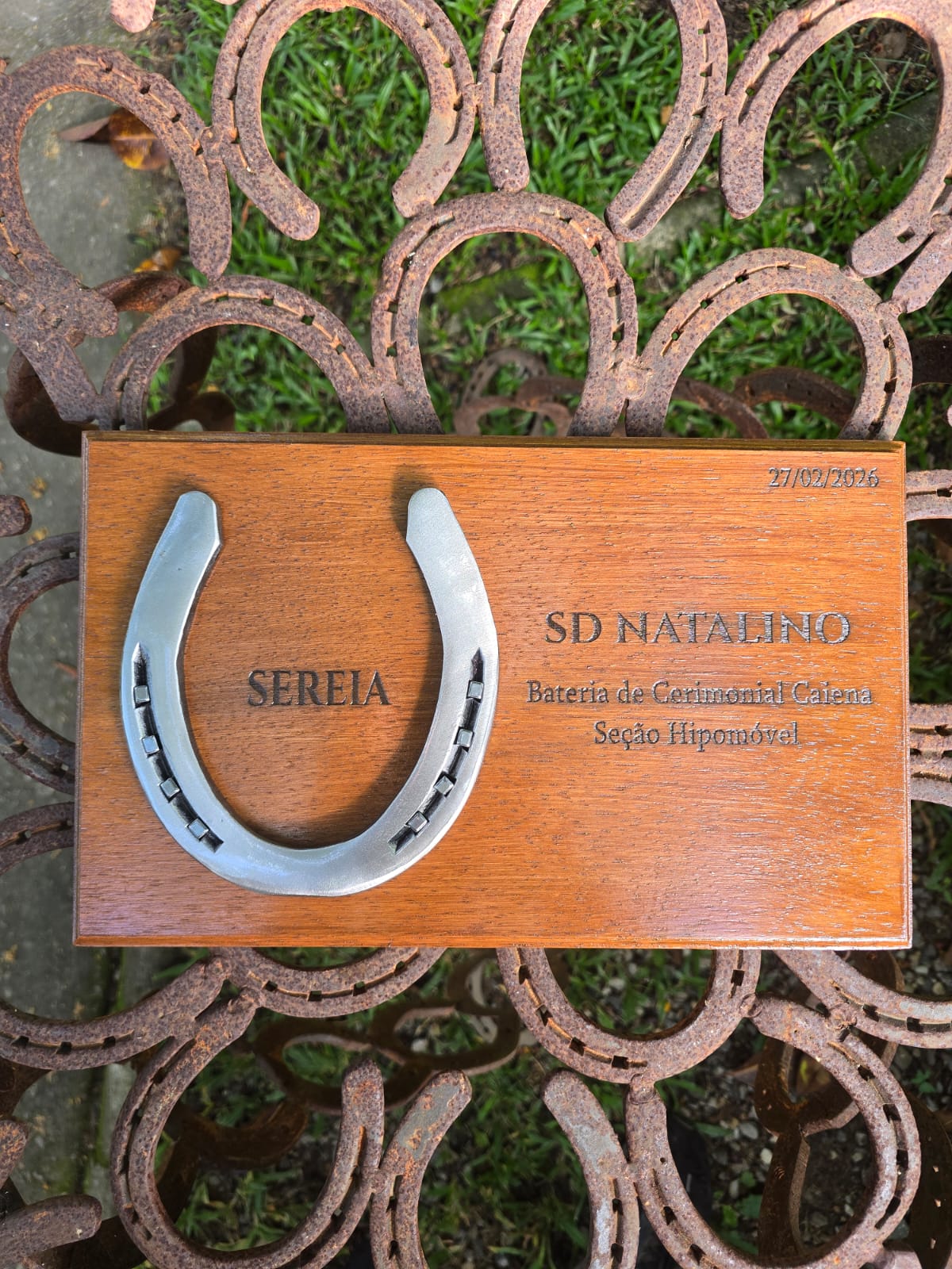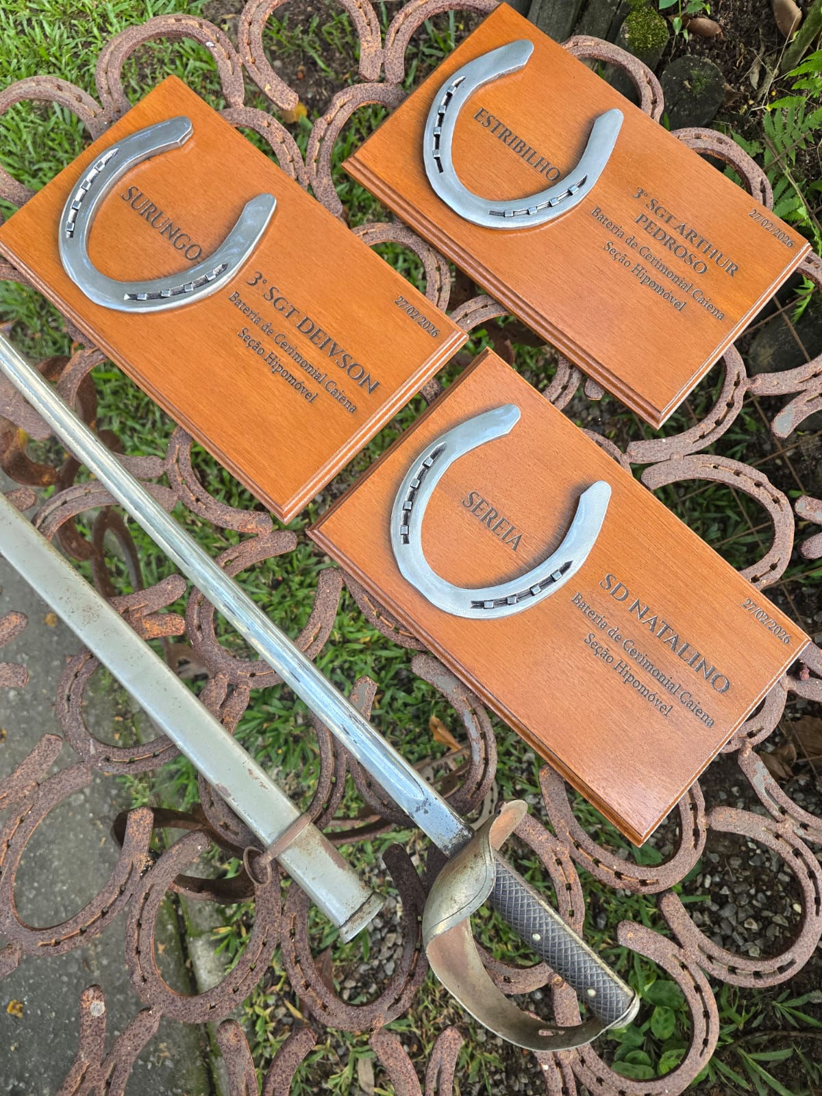 Placa em madeira tamanho 15x30, personalizado como quiser. Com ferradura com cabeças de cavalo forjadas.