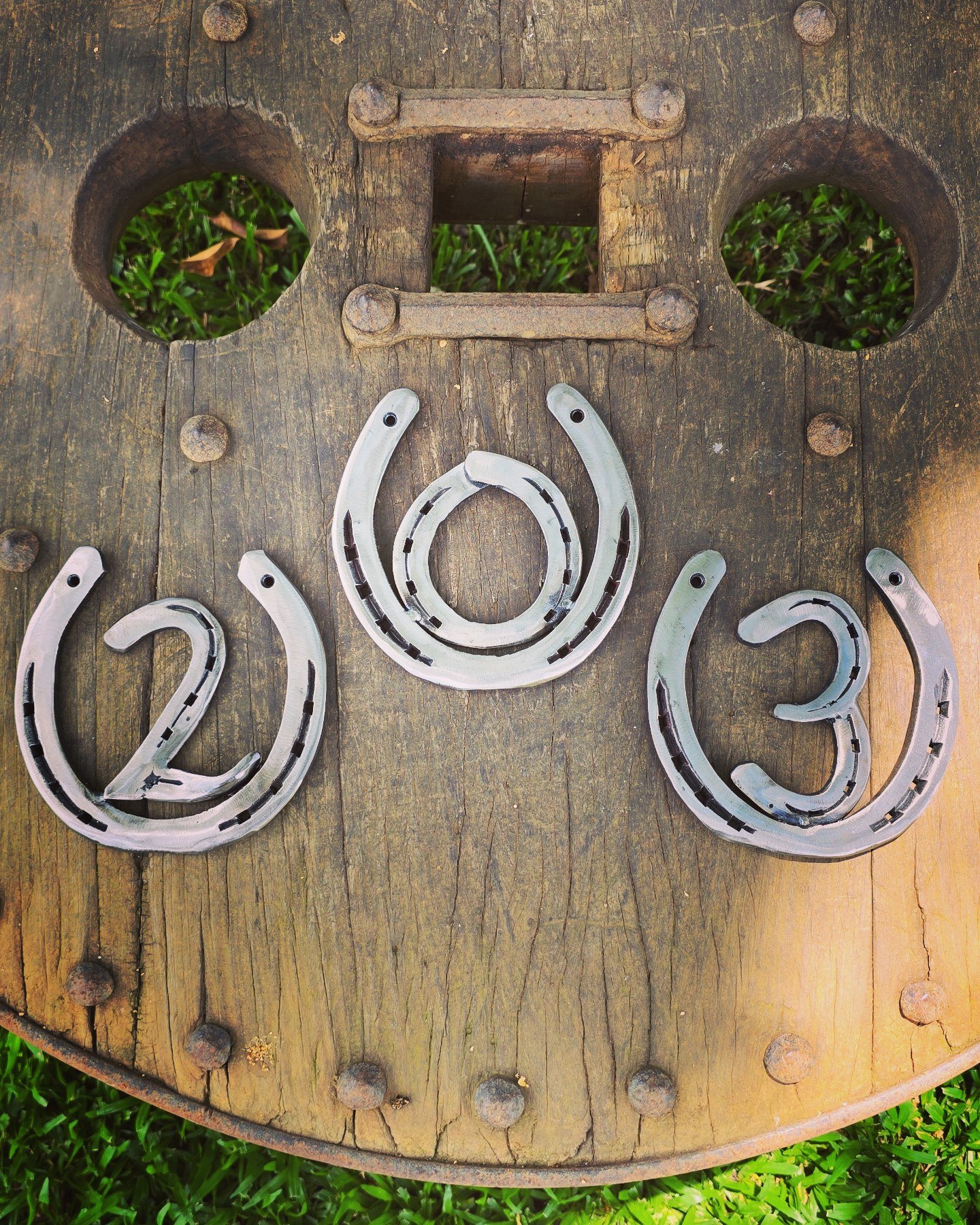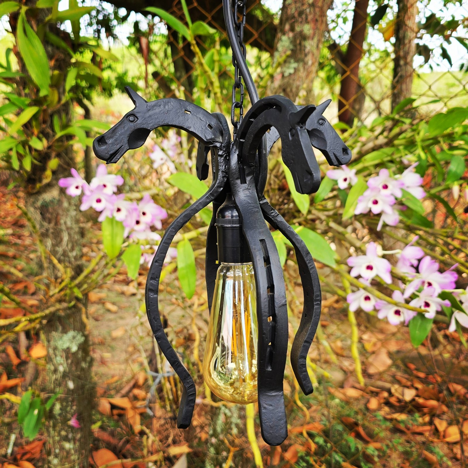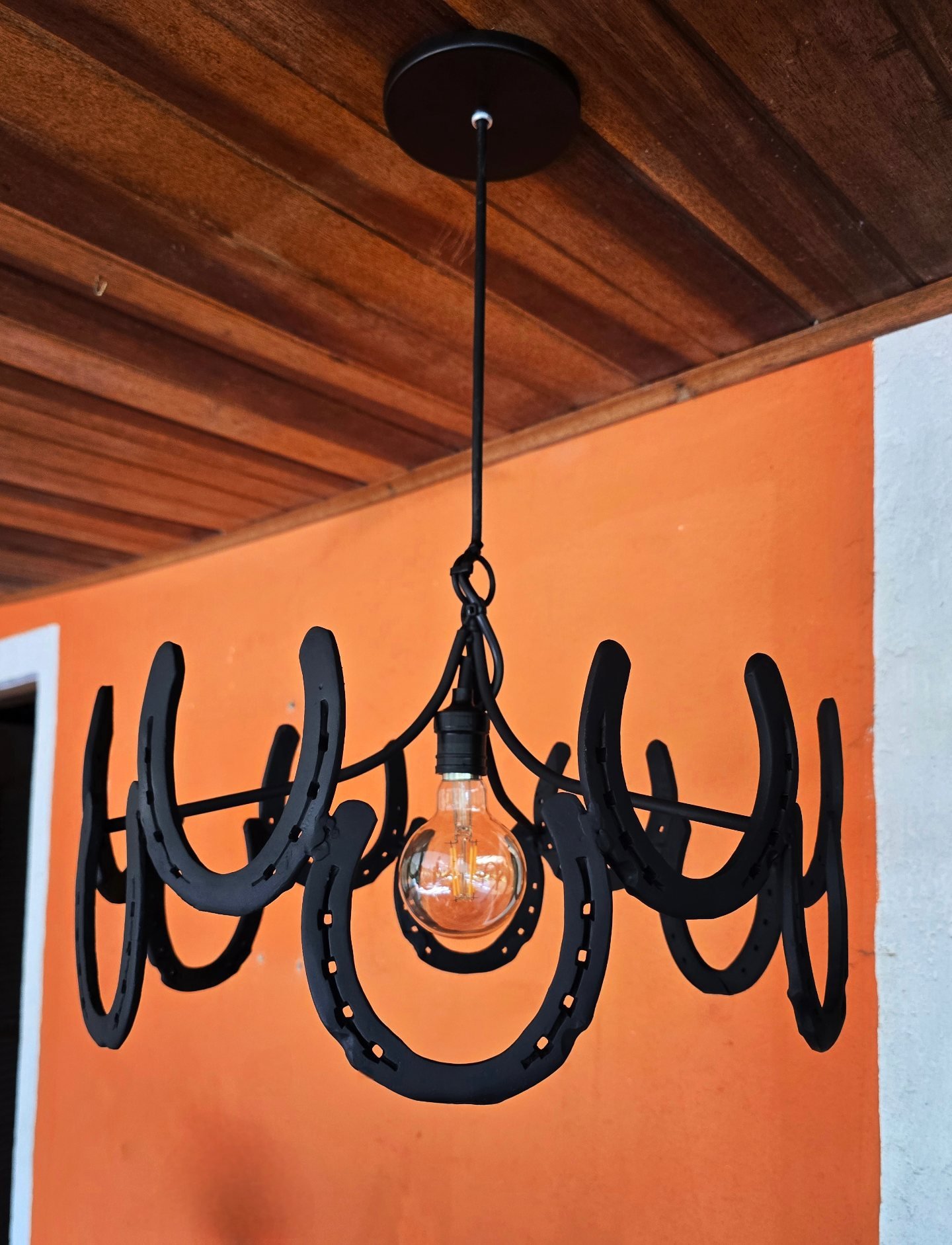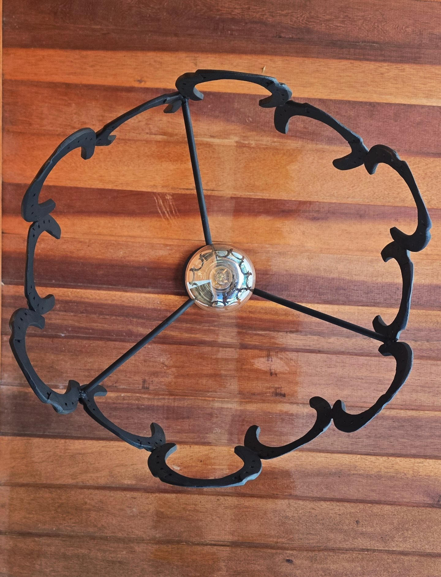 Pendente de 20cm diâmetro, em ferraduras.
