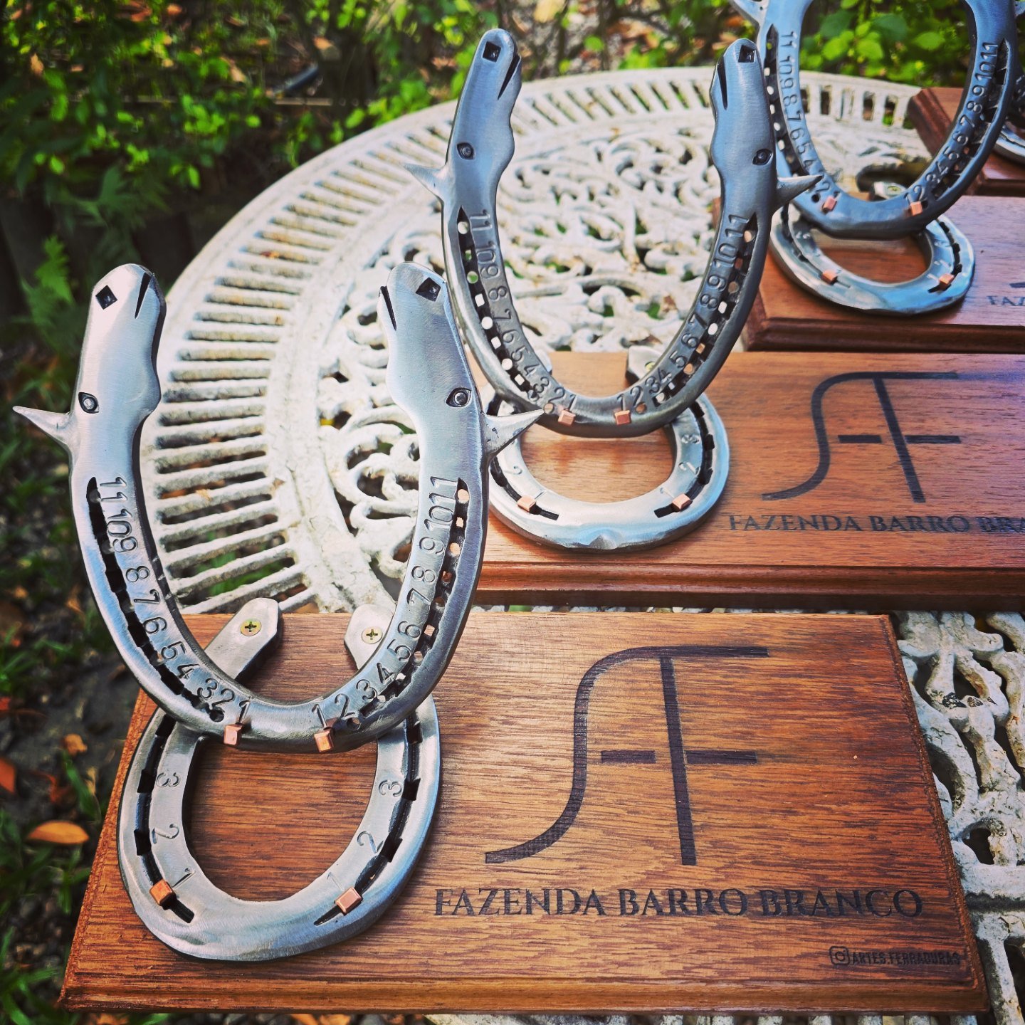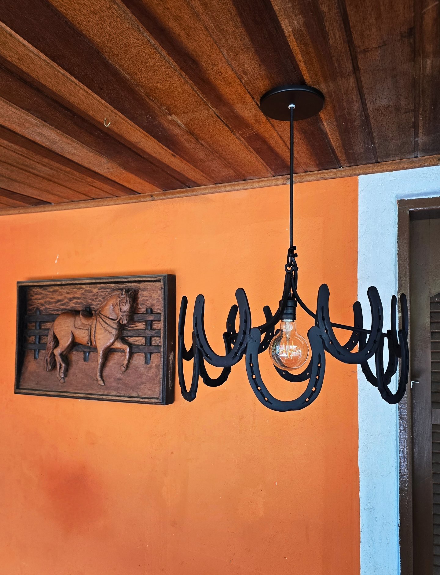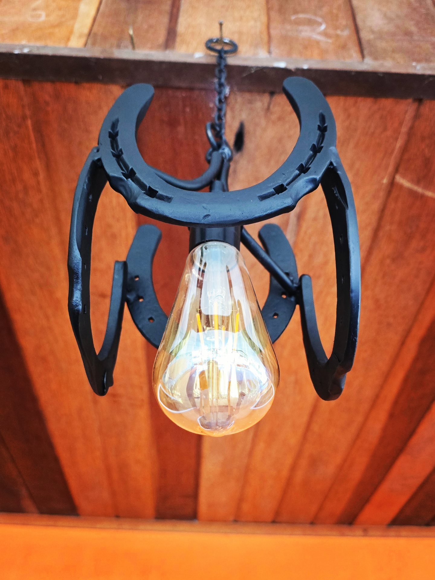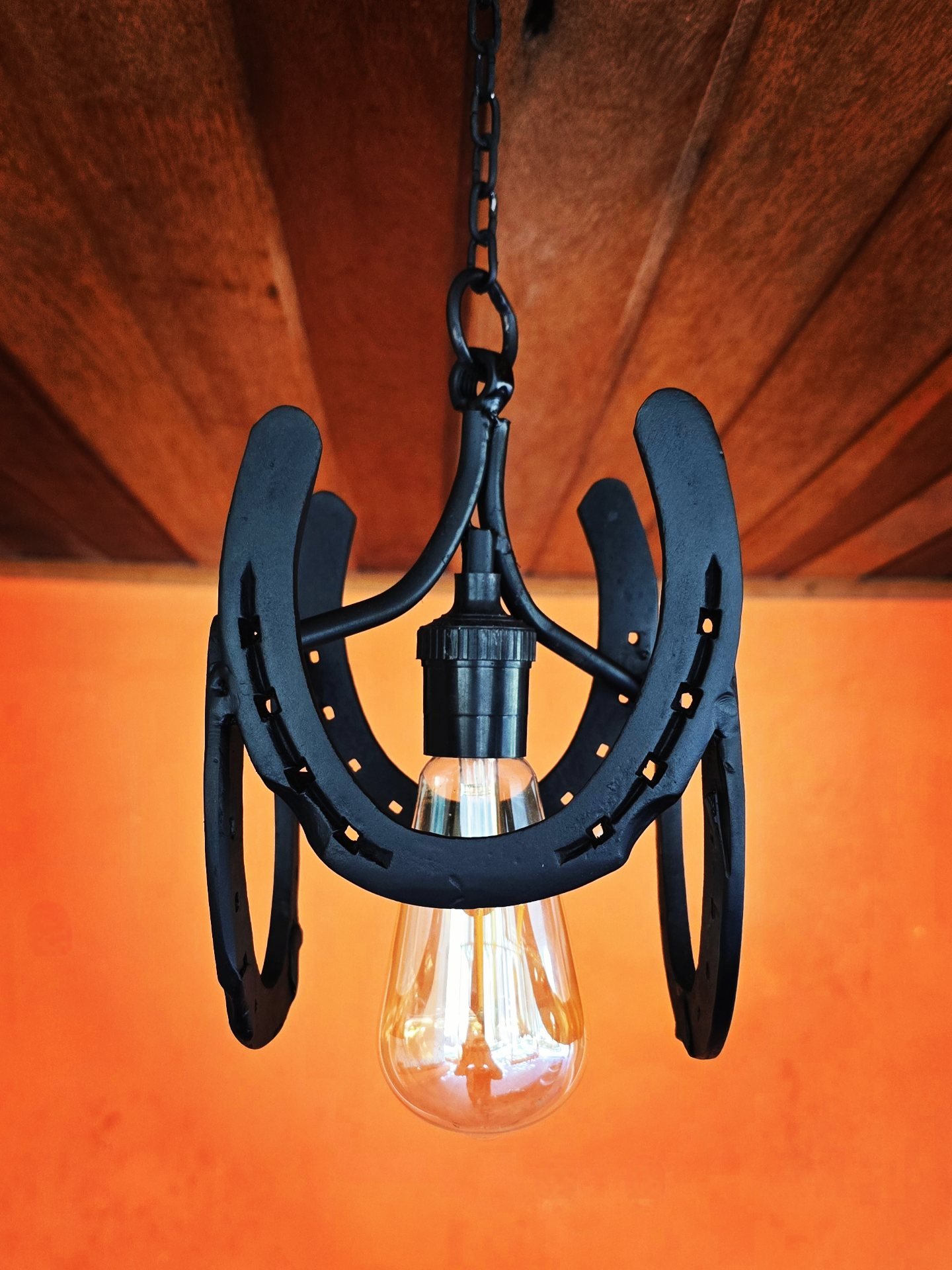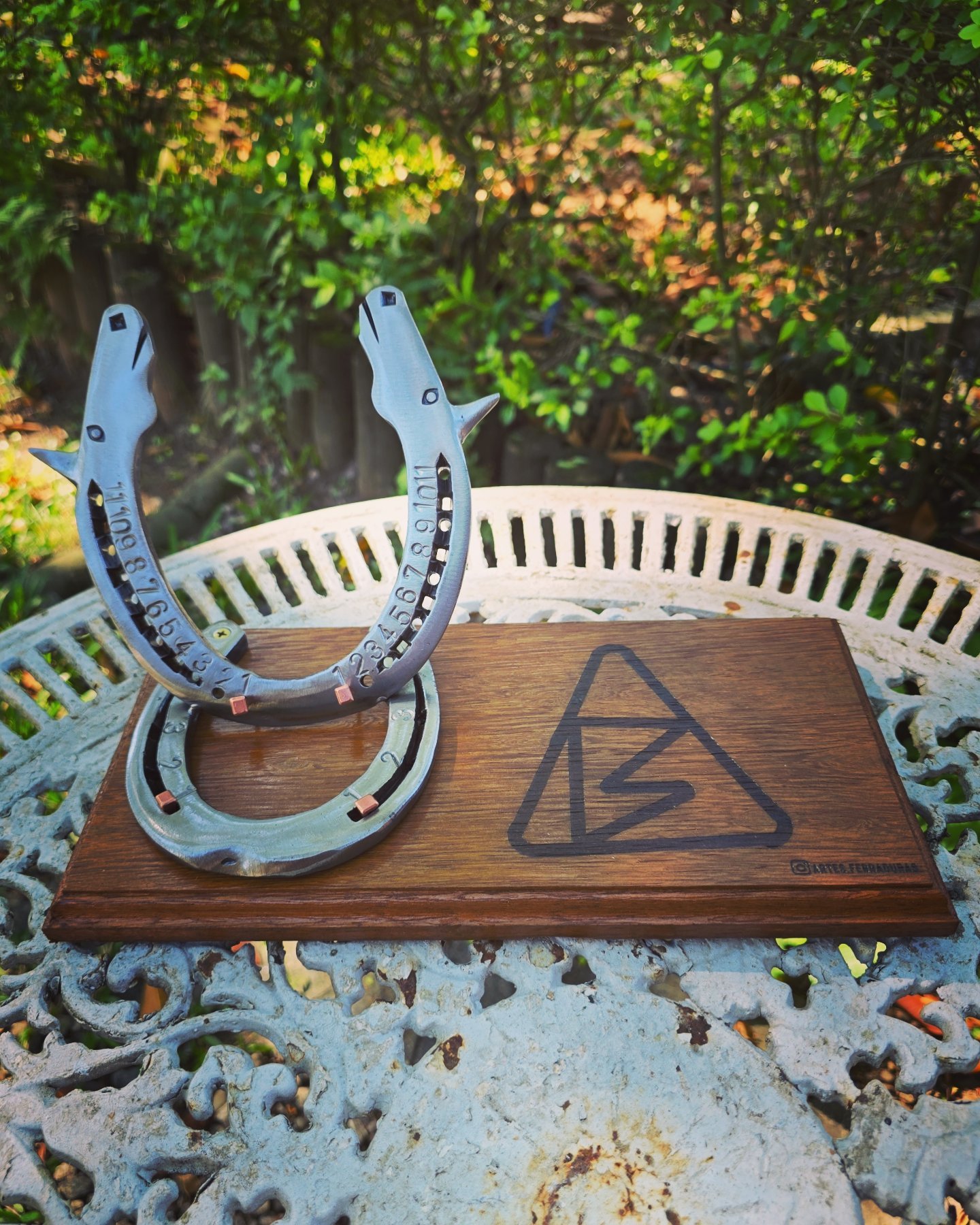 Pendente de 20cm diâmetro, em ferraduras.
