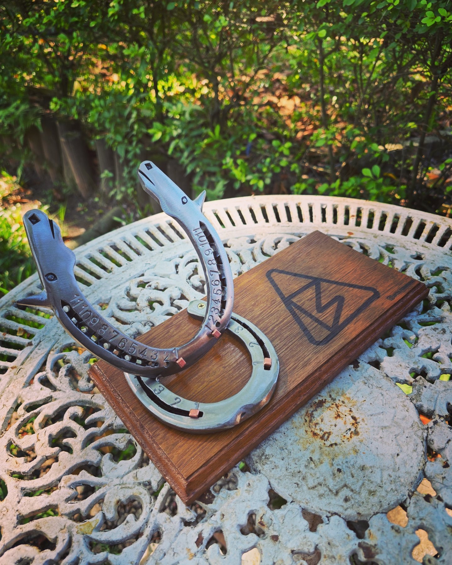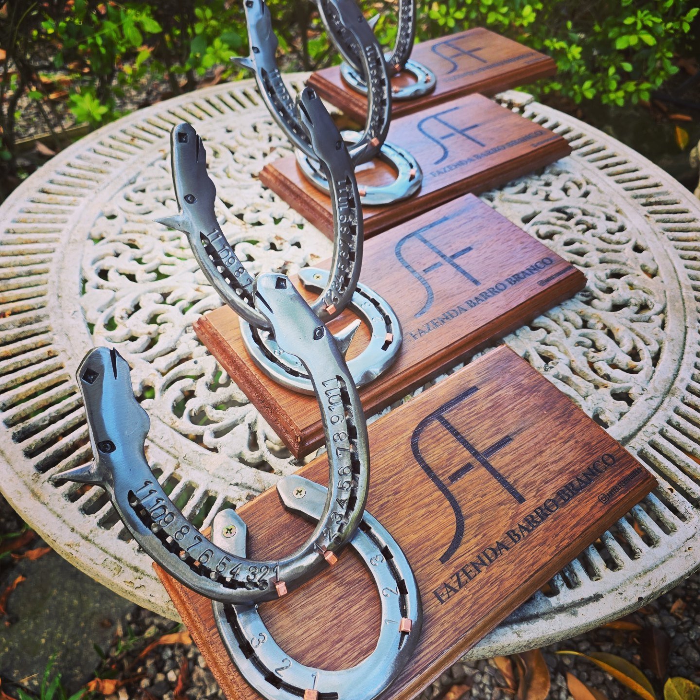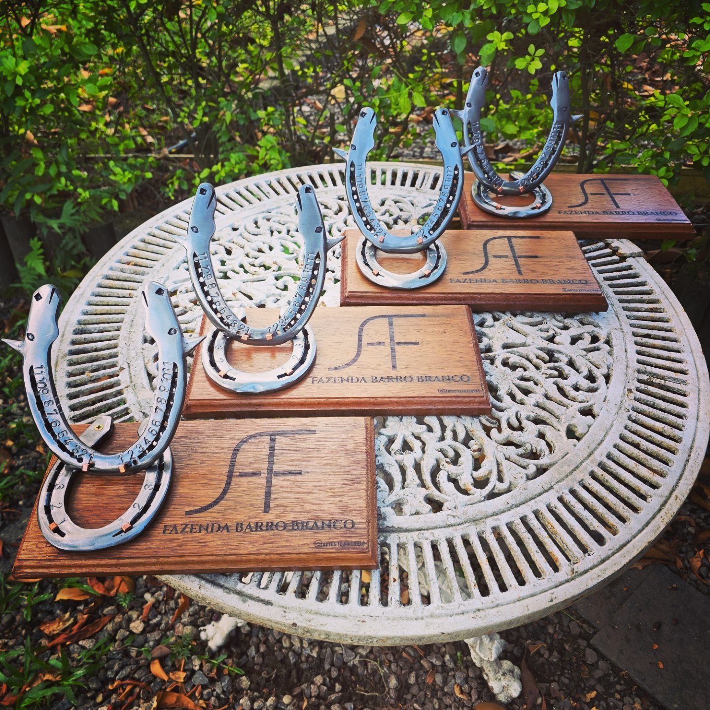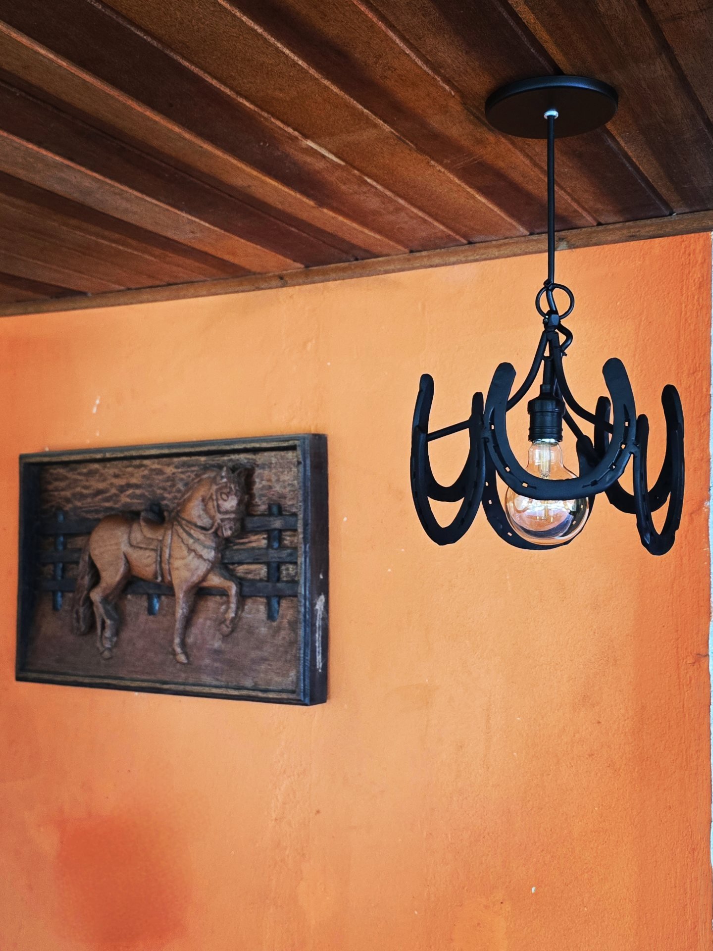 Pendente de 20cm diâmetro, em ferraduras.