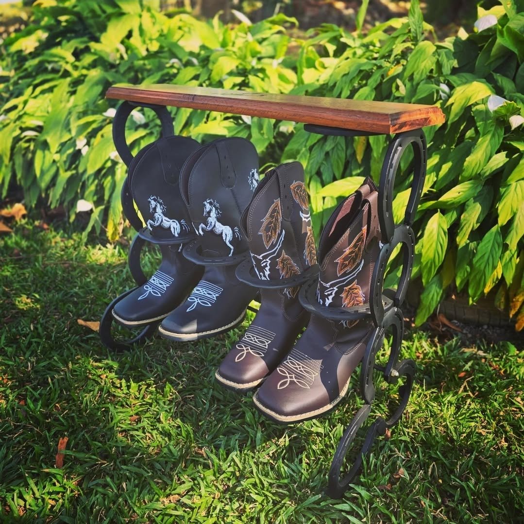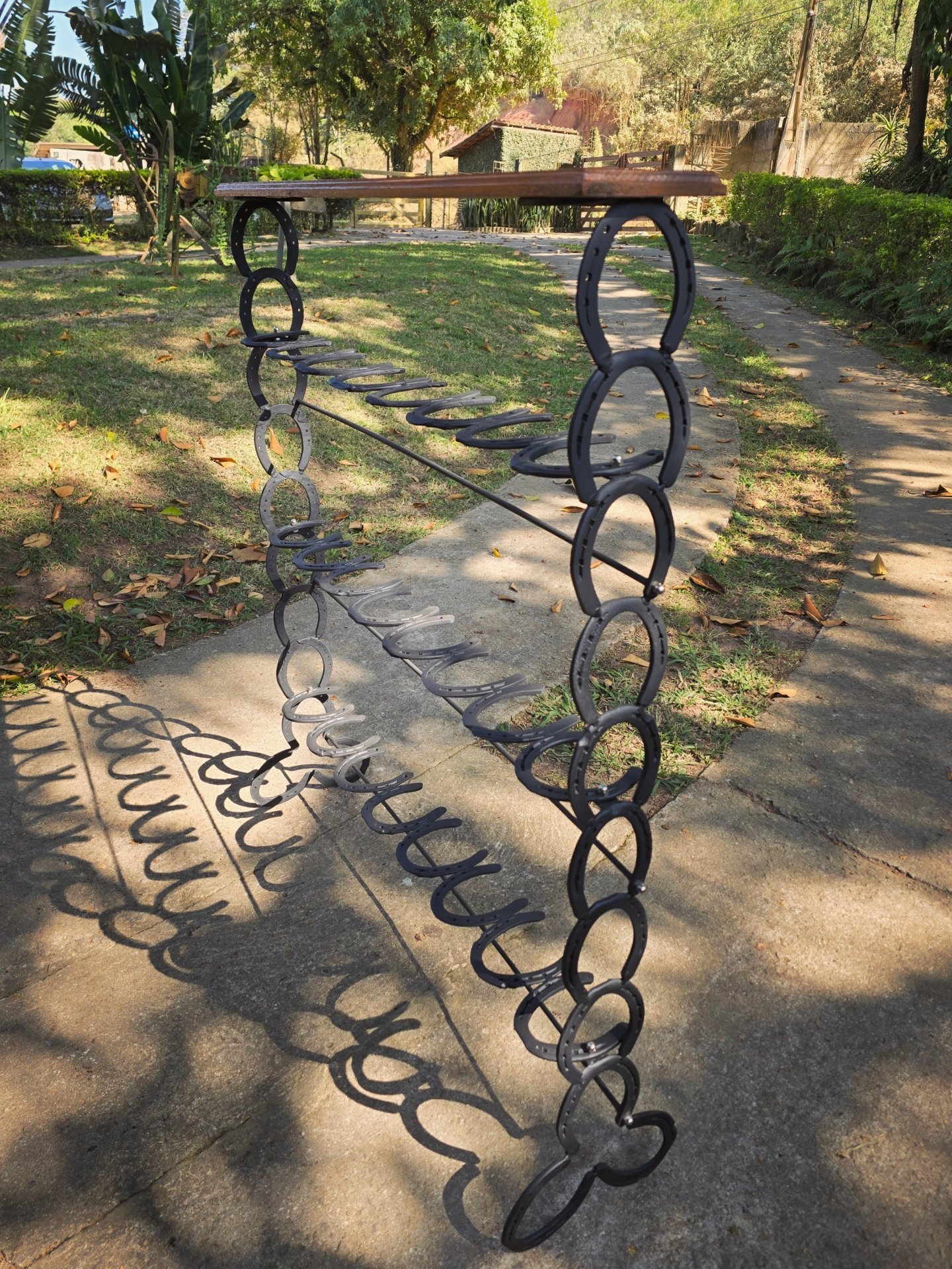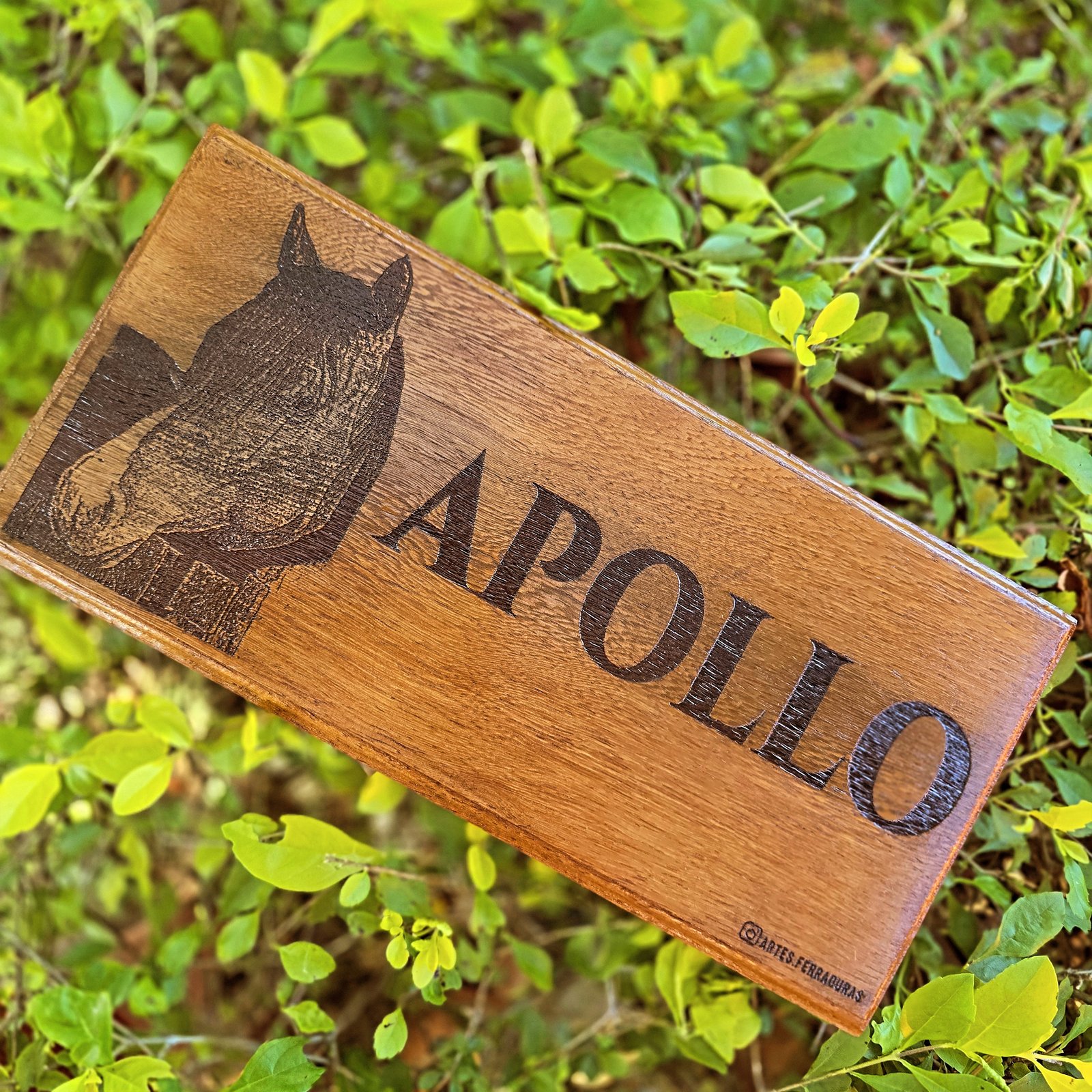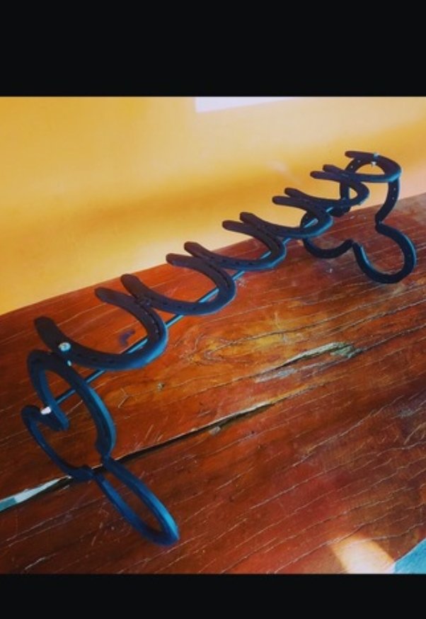 Placa em madeira tamanho 15x30, personalizado como quiser. Com ferradura com cabeças de cavalo forjadas.