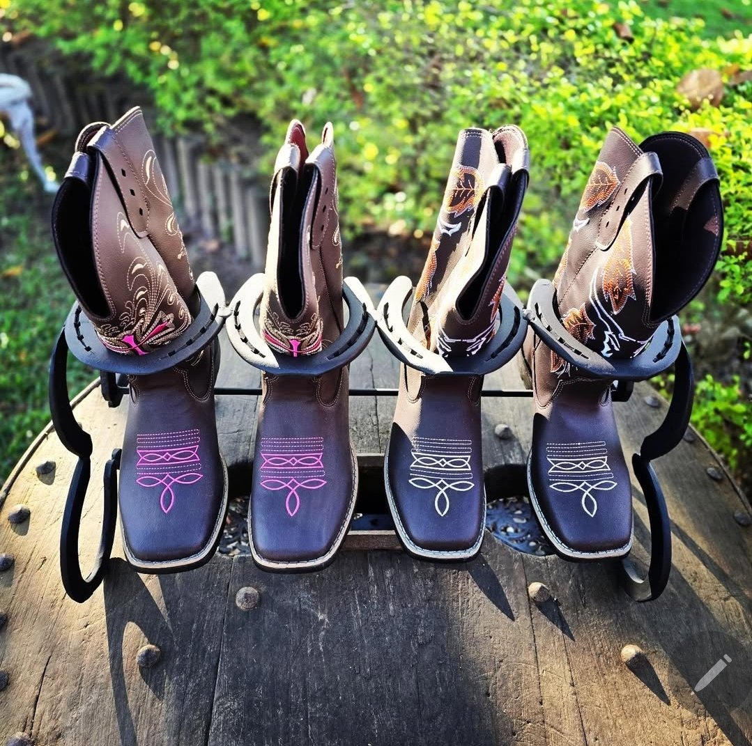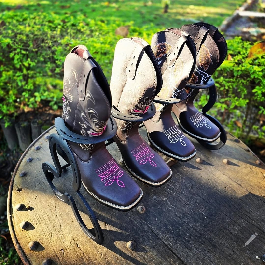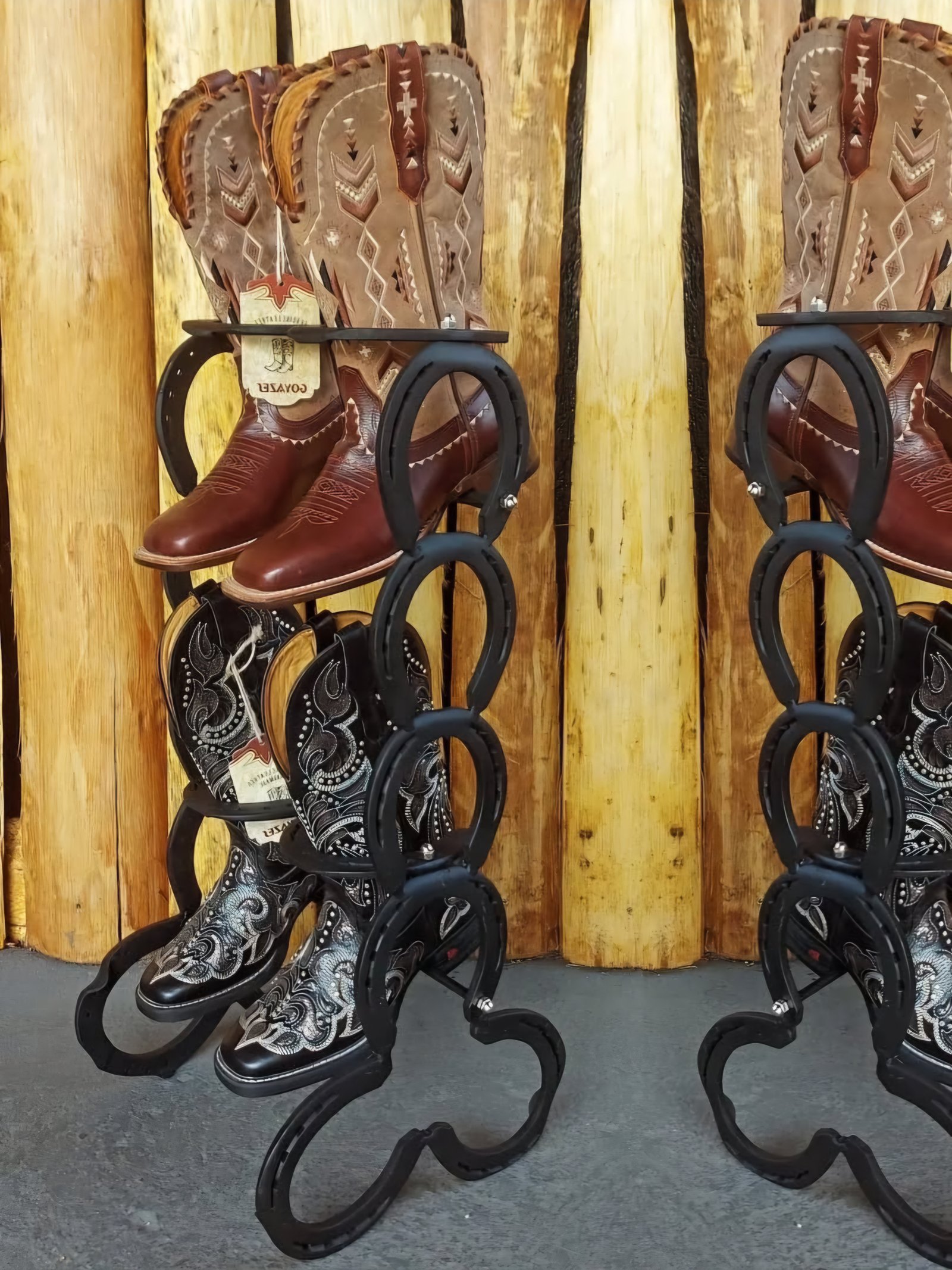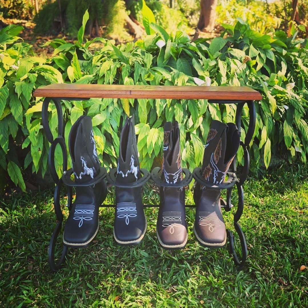 Desmontável, capacidade para 12 pares. Prateleira na parte superior. Dimensões aproximadas Altura 1.50mt × Comprimento 1.20mt