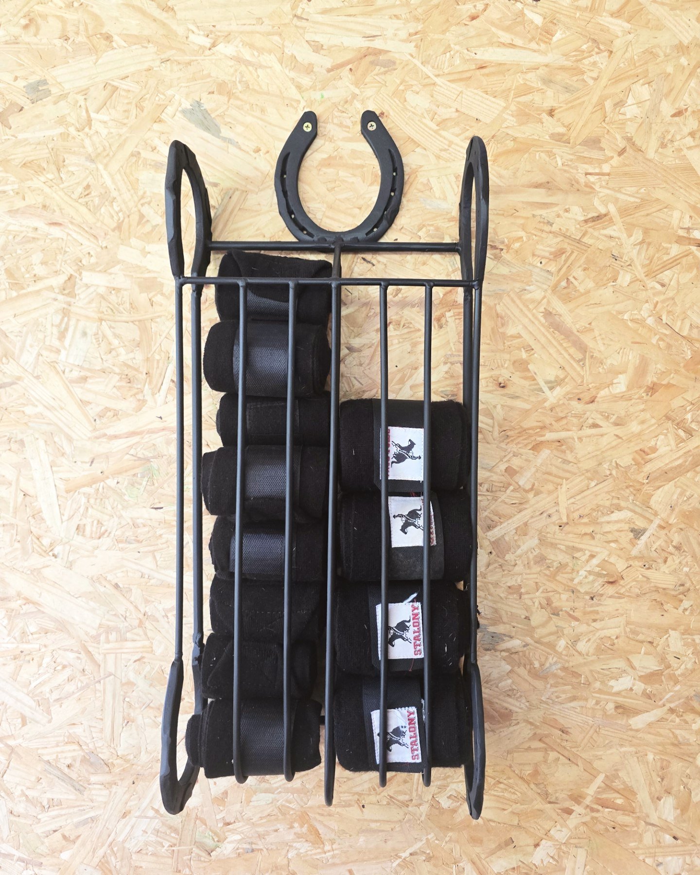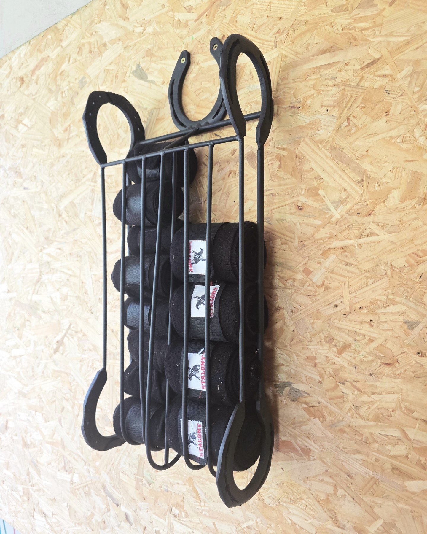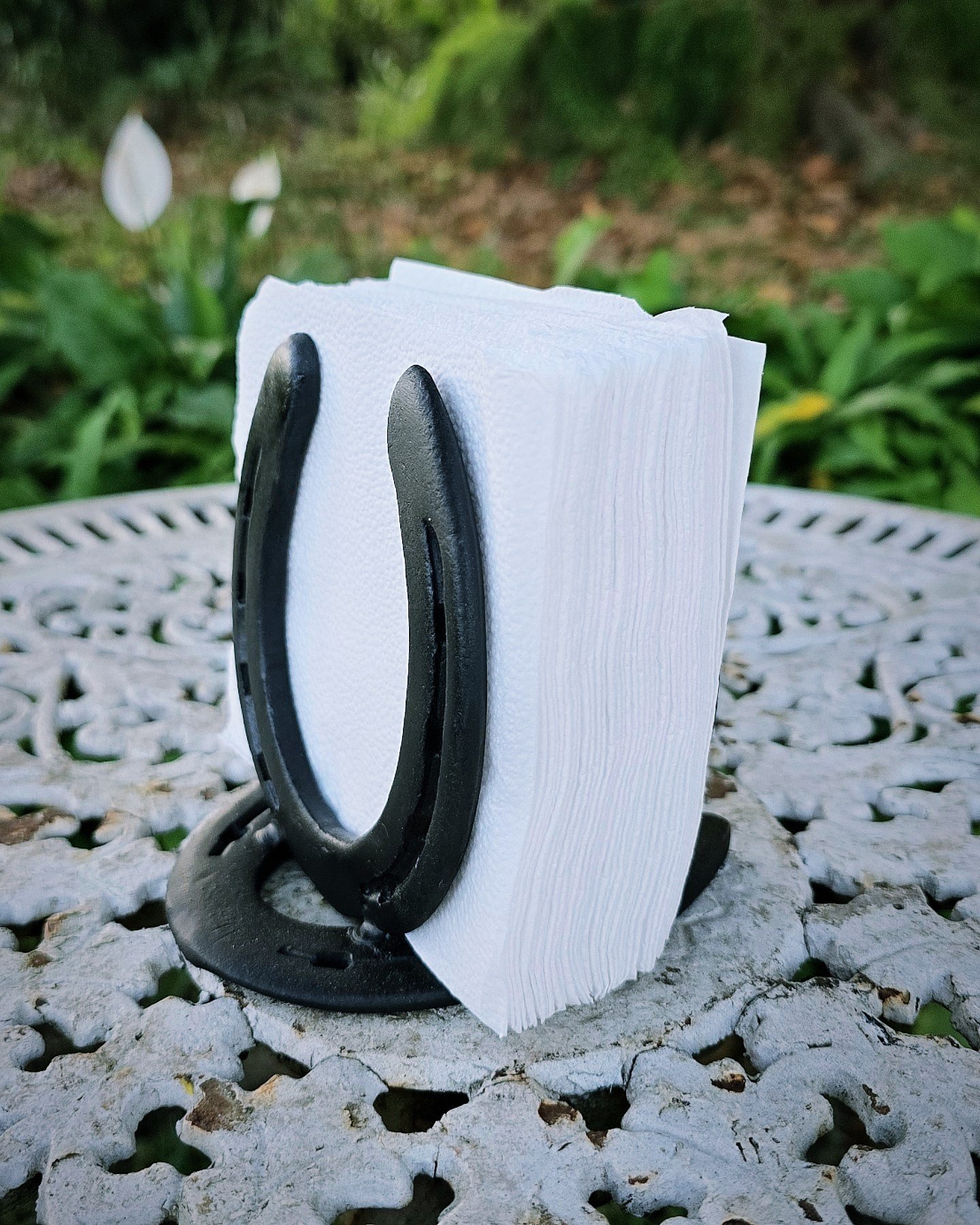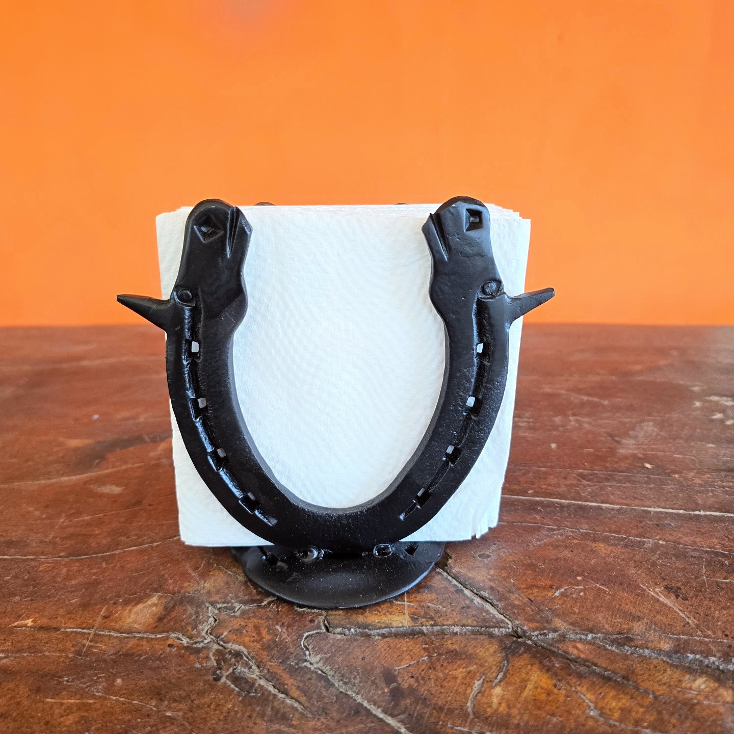 Suporte para guardanapos de papel, feito com ferraduras.