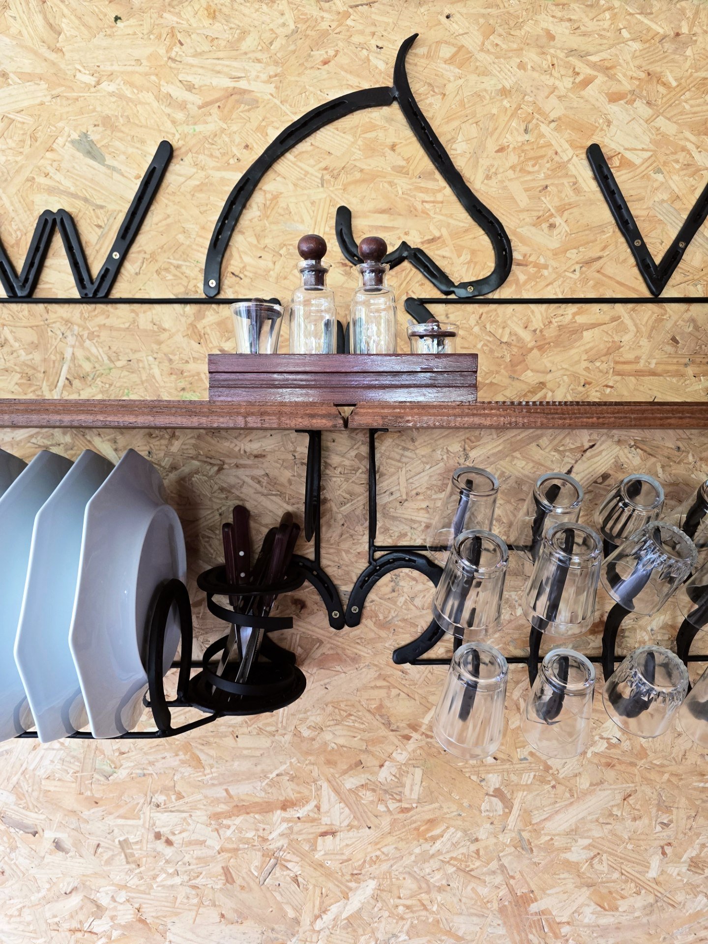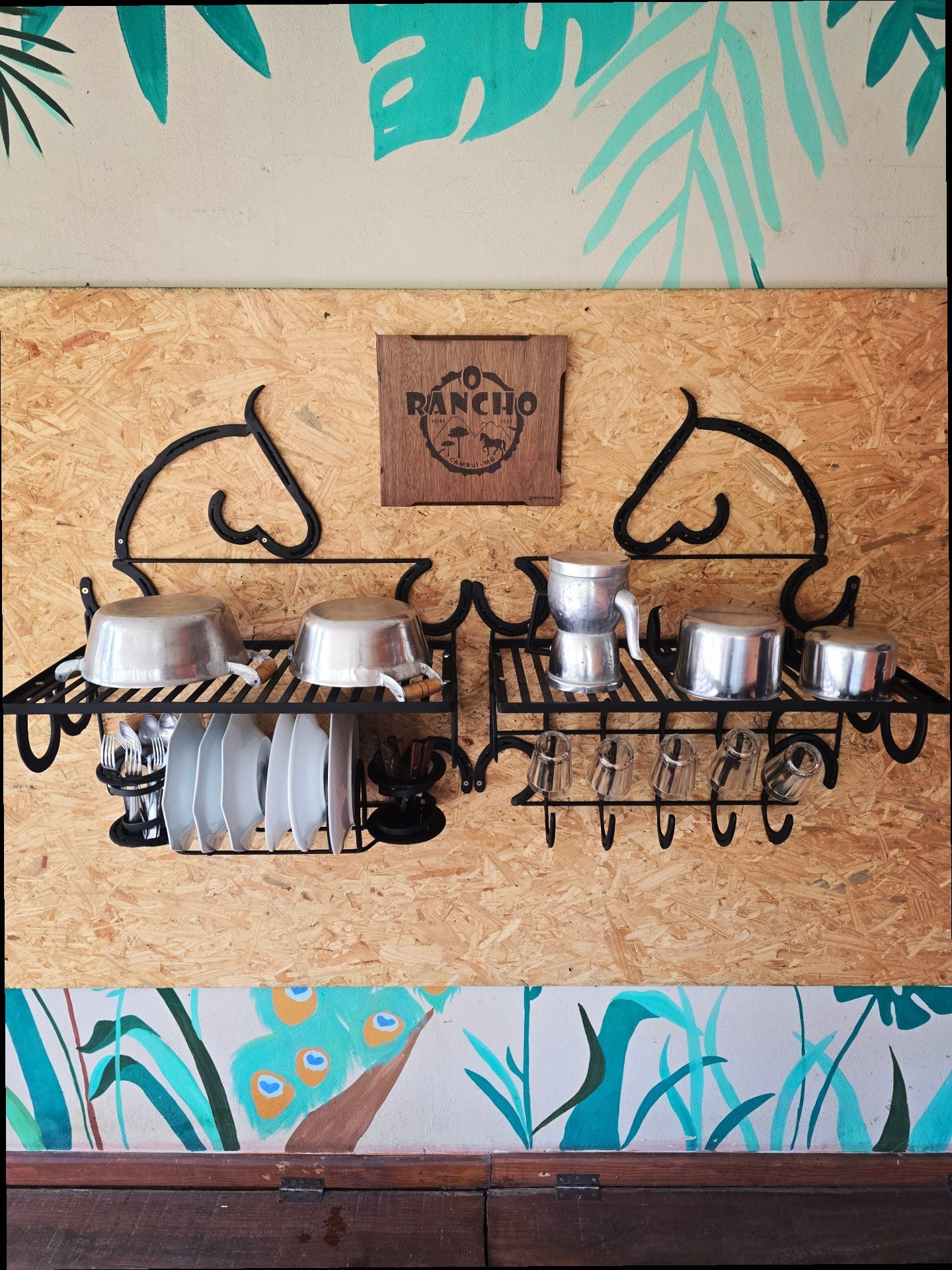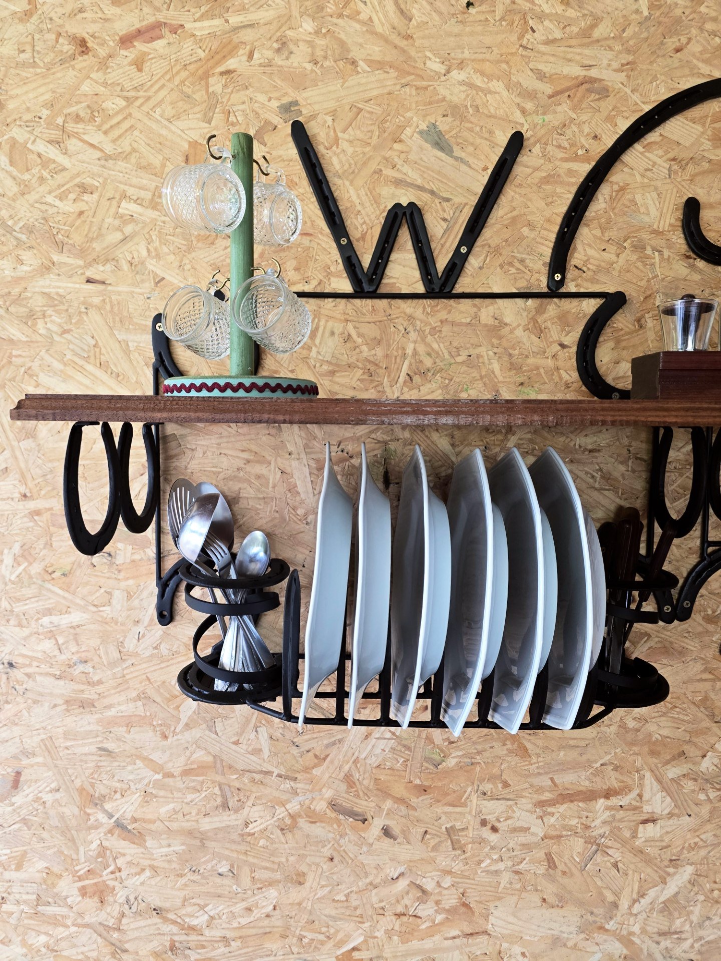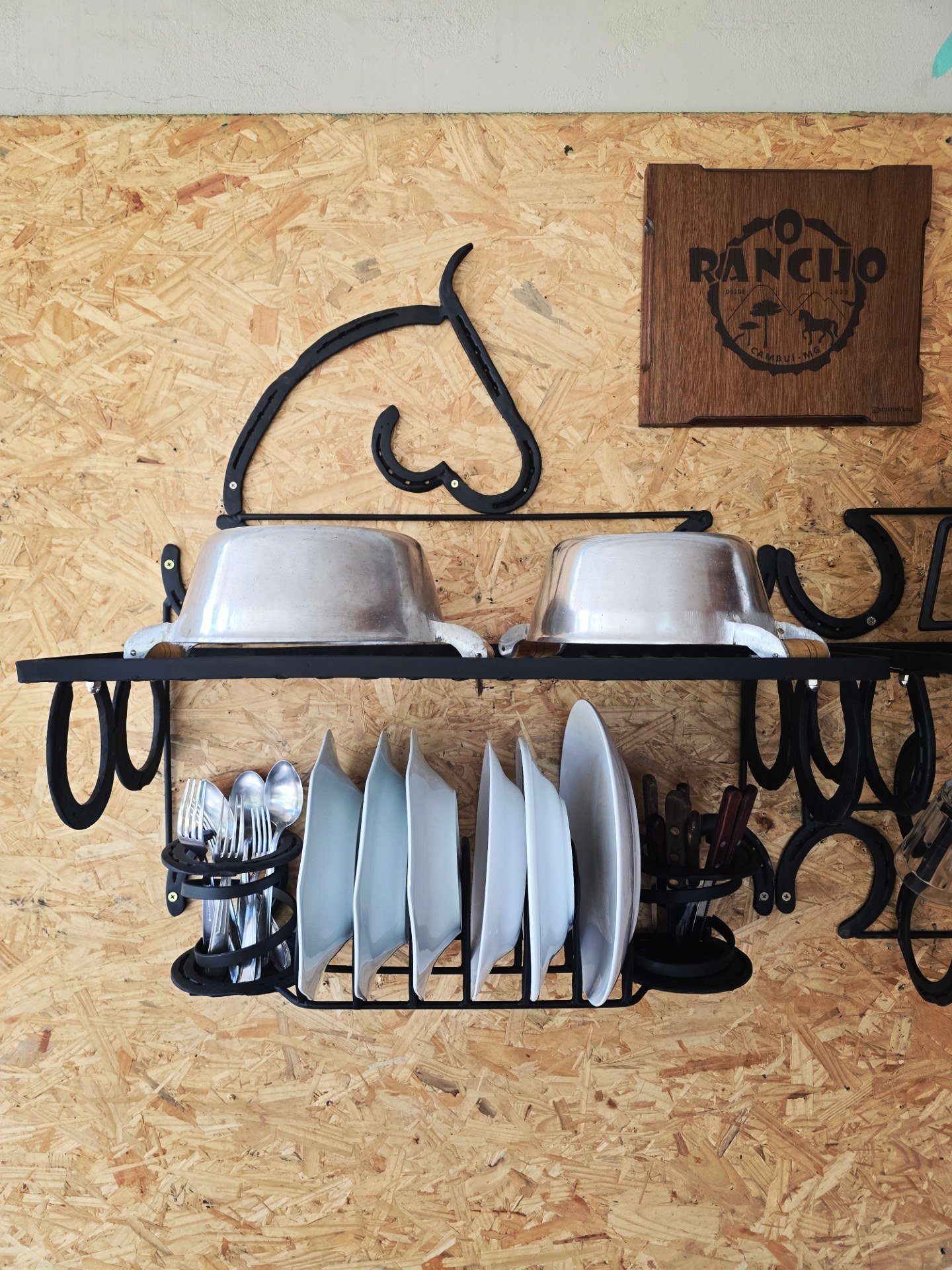 Capacidade 6 Pratos, 10 Copos, diversos Talheres. Prateleira superior em ferro. Comprimento total de 1.30mt. Podendo ser sob Medida.