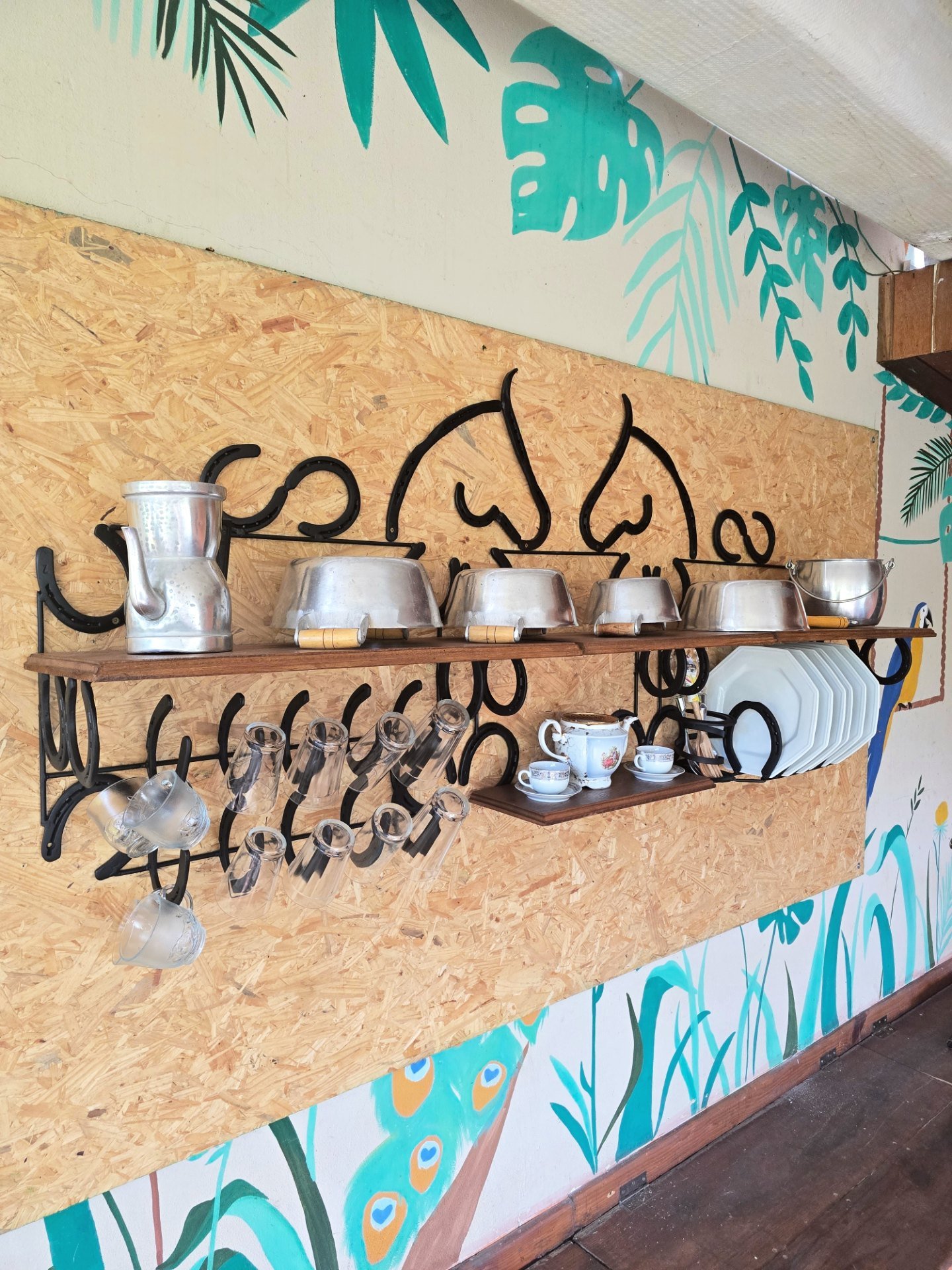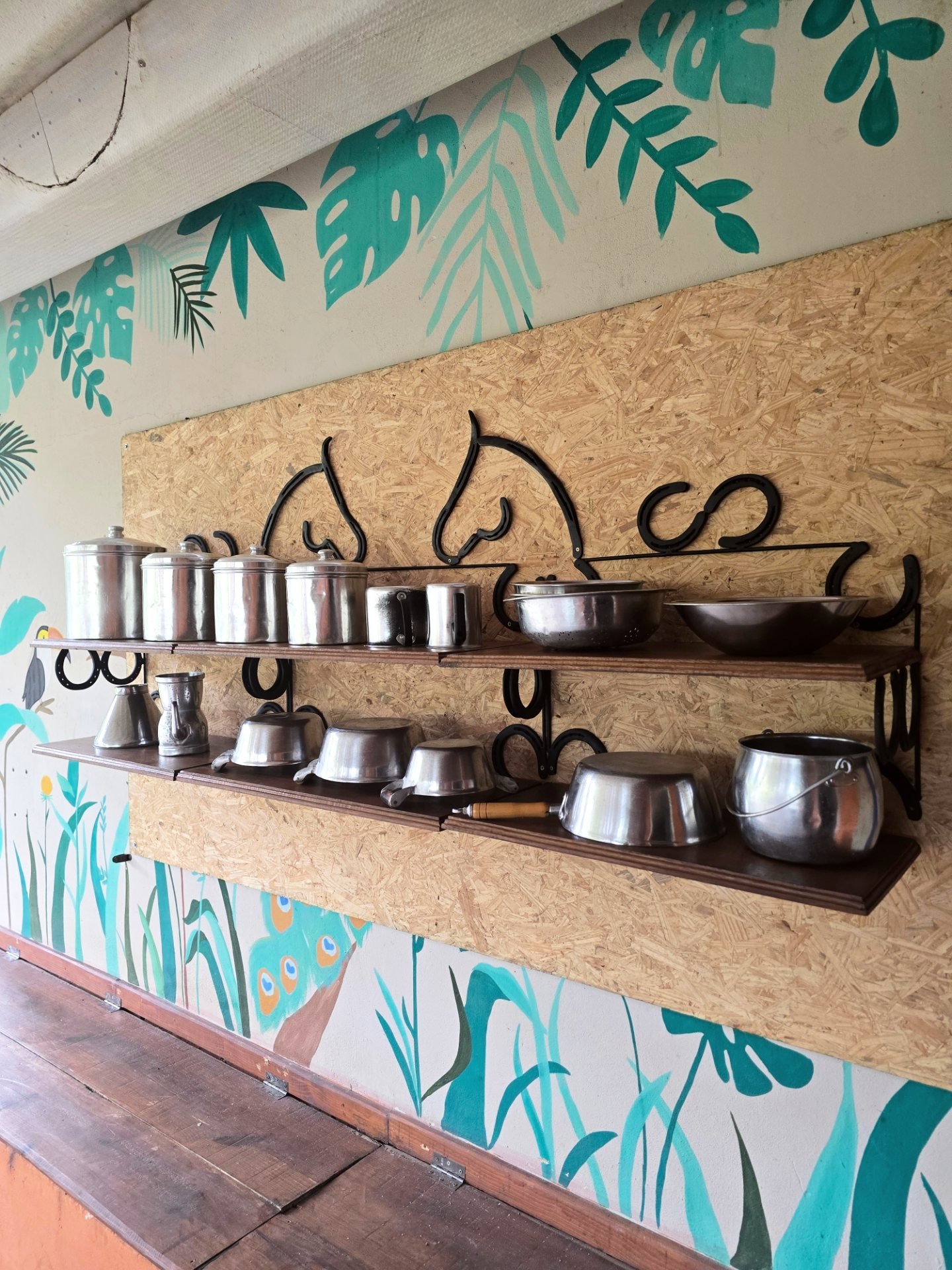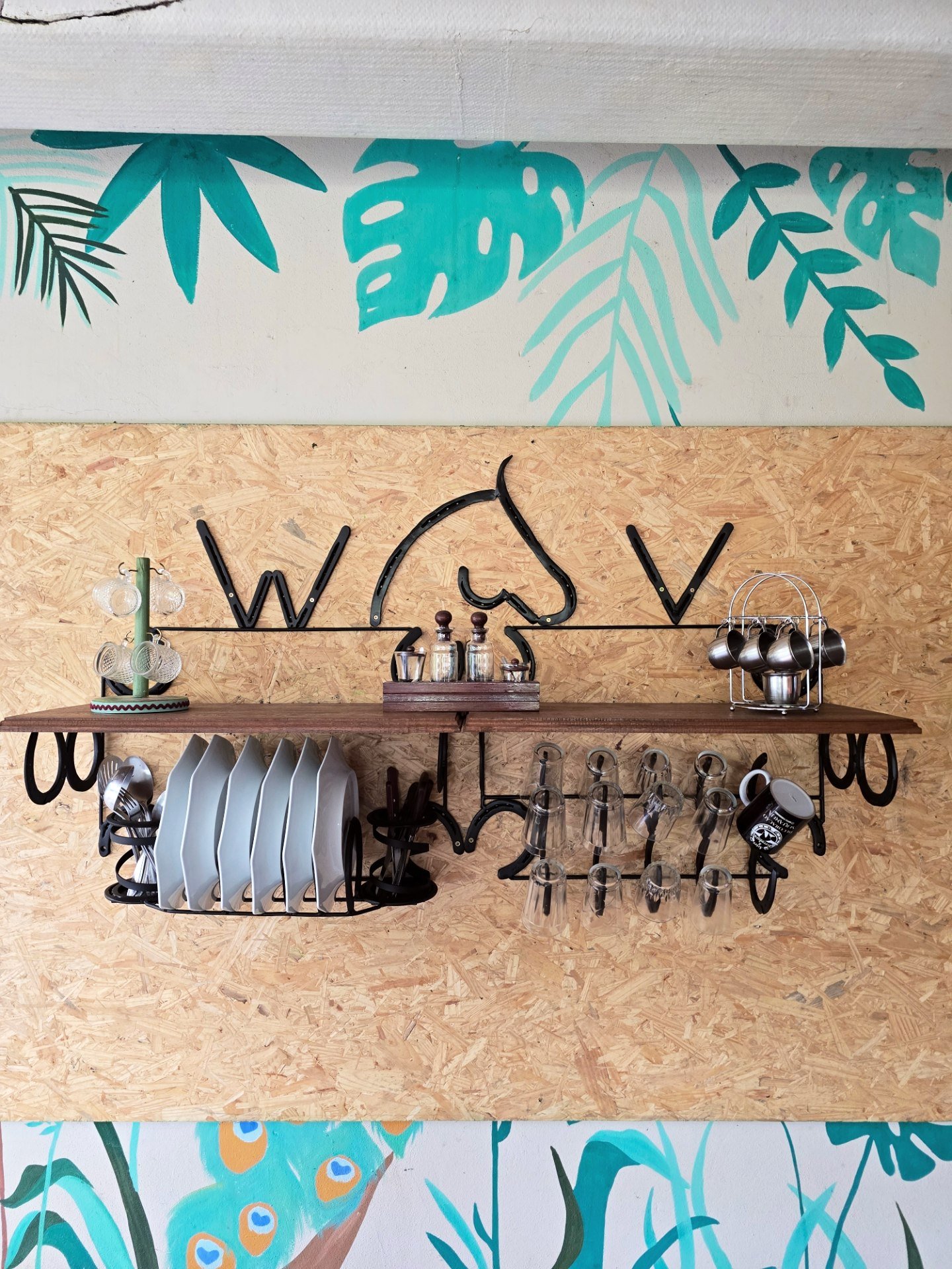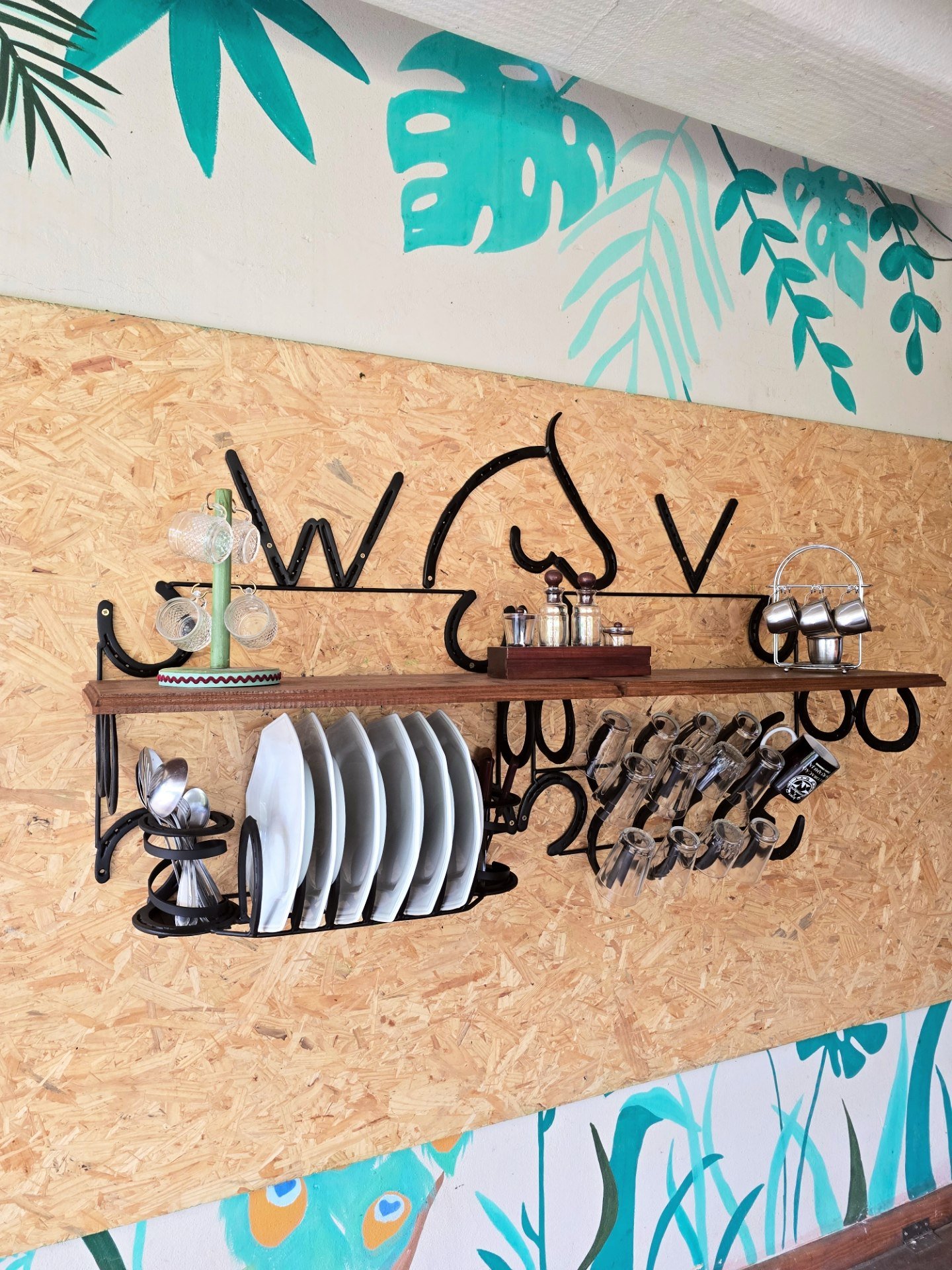 Capacidade 6 Pratos, 10 Copos, diversos Talheres. Prateleira superior em ferro. Comprimento total de 1.30mt. Podendo ser sob Medida.
