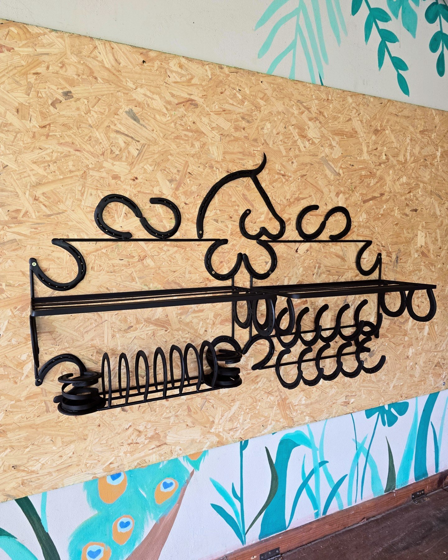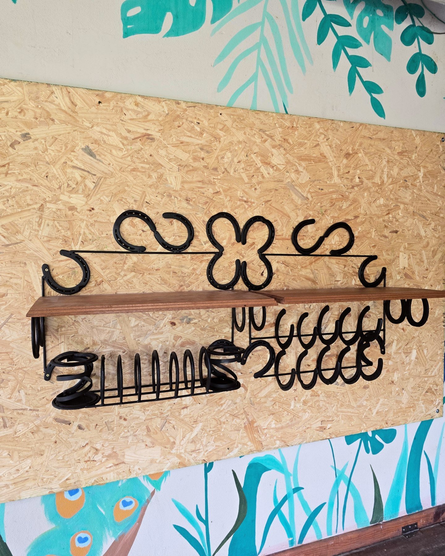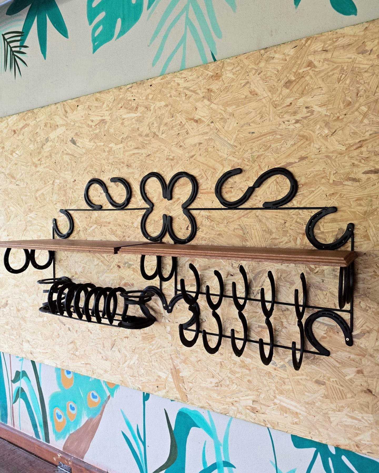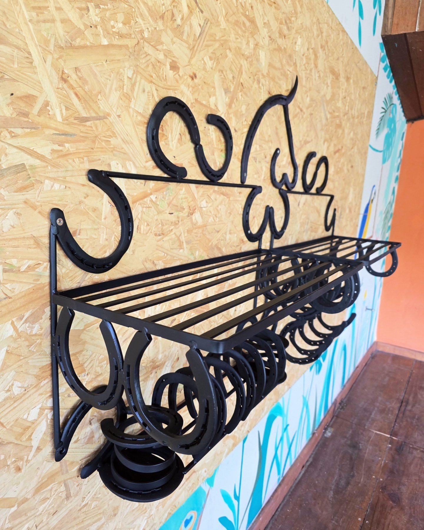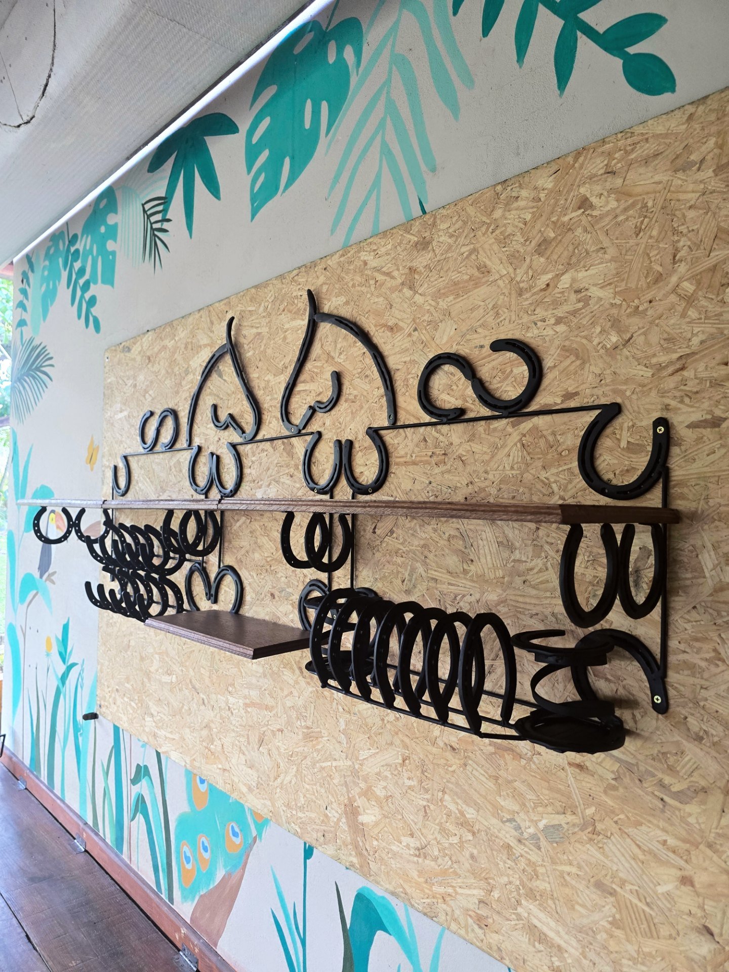 Comprimento total 1.30 mt. Cabeça de cavalo e Letras feitos com ferradura. Podendo ser feito sob medida.