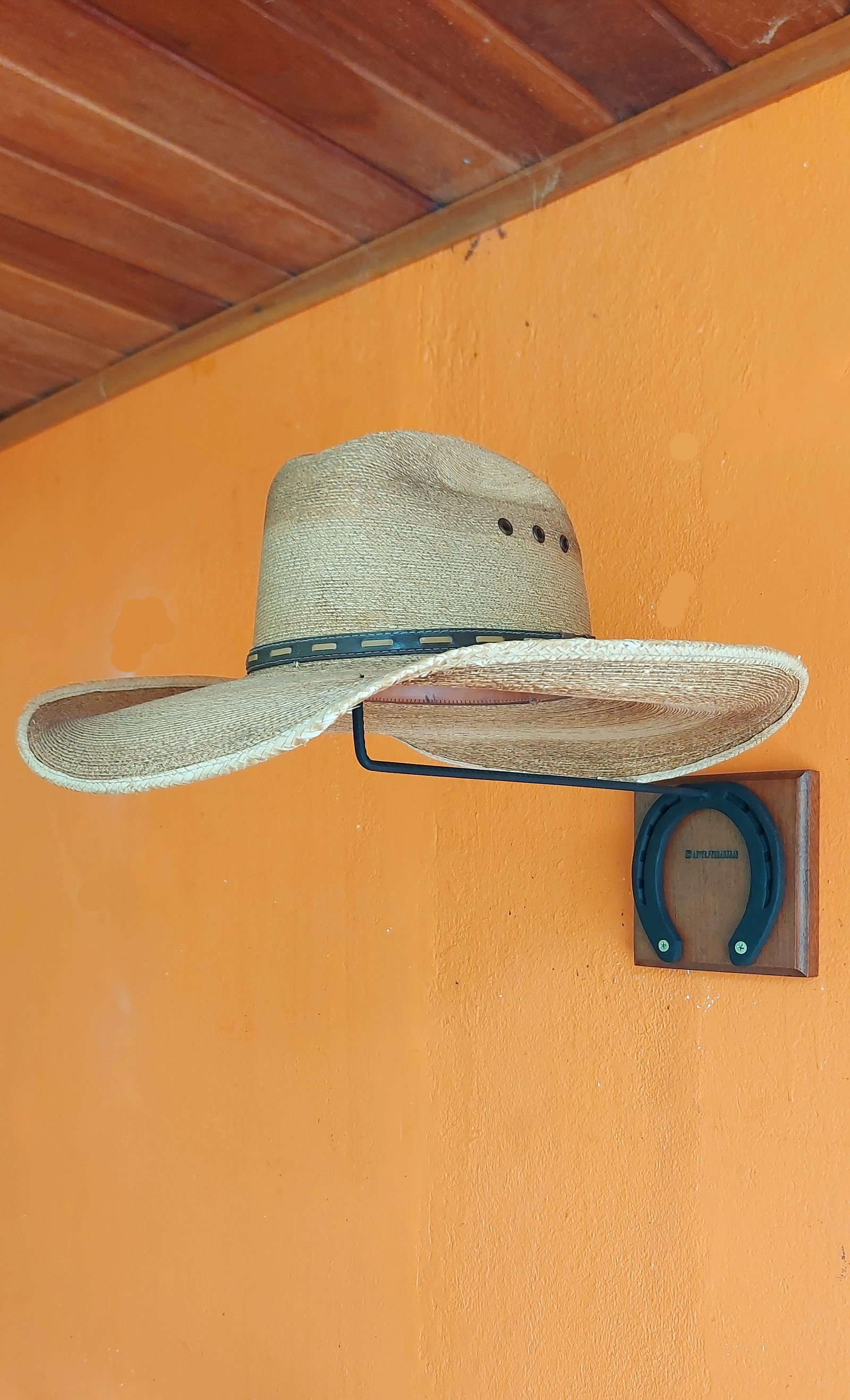 Cabide para Chapéu, base de madeira, personalizada com Nome/Logo. Acompanha buchas e parafusos para prender na parede.
