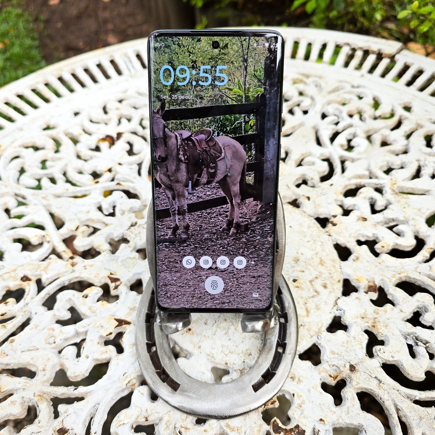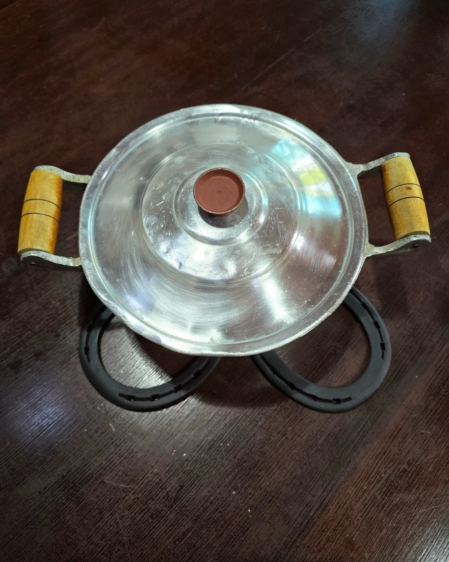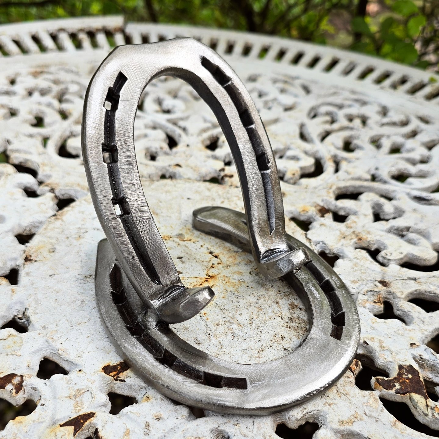 Apoio de panela ou travessa feito em ferraduras.