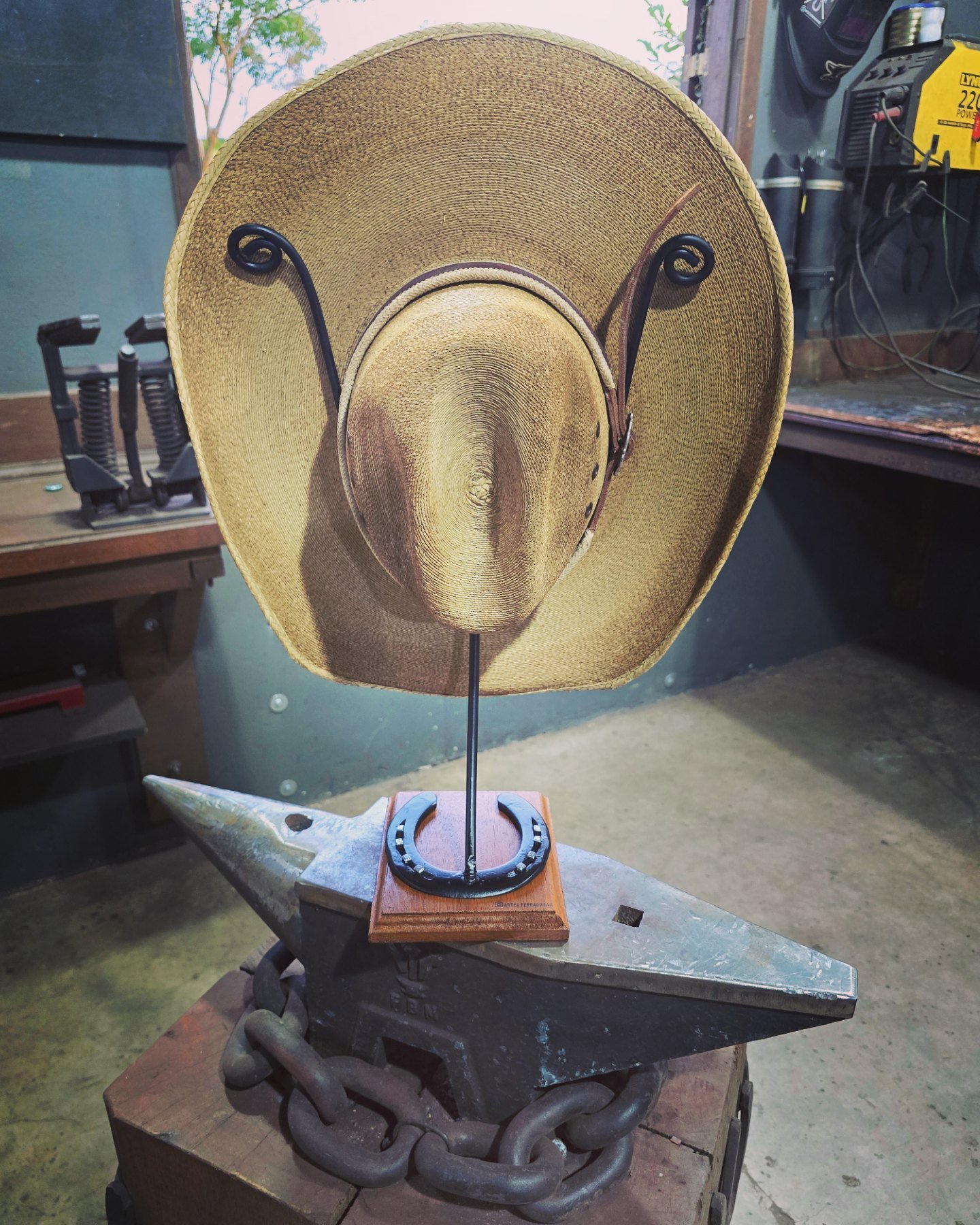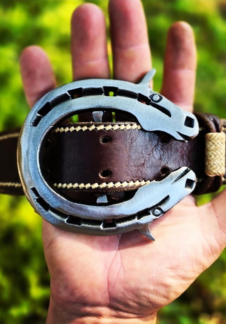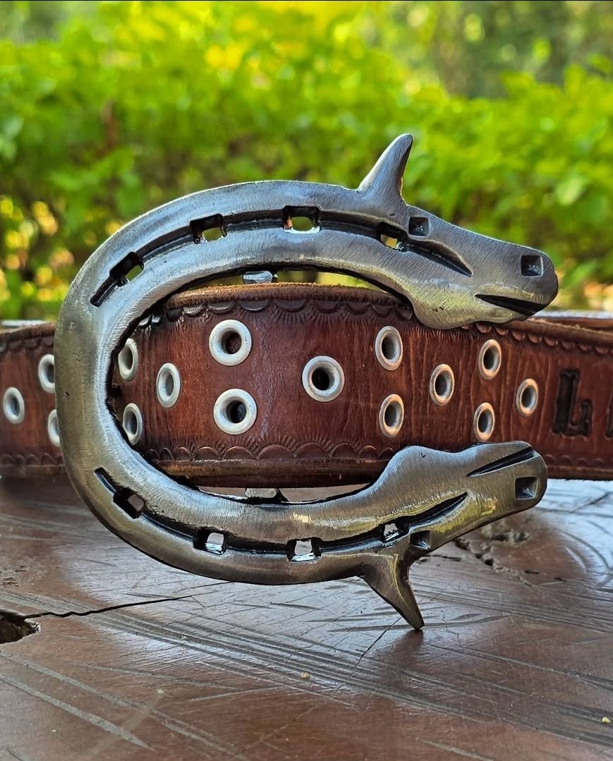 Confeccionada em Ferradura com cabeças de cavalo forjadas, geralmente de Números 3x0 a 0. Depende da disponibilidade no momento. Tamanho final em média de 8 a 10cm.